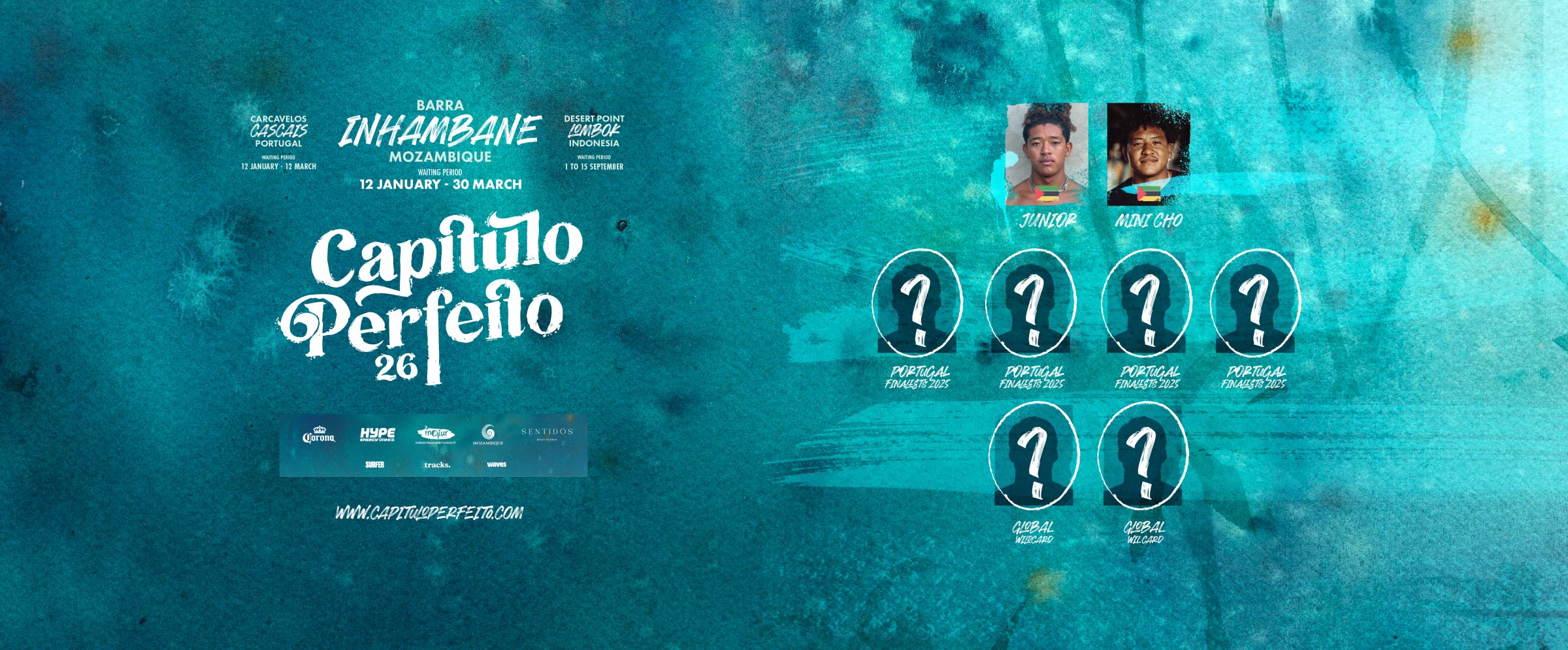 Descubra os surfistas de elite que vão competir no Capítulo Perfeito 2026 em Moçambique, na Praia da Barra. Um line-up que junta wildcard locais, globais, e os vencedores do Capítulo Perfeito Carcavelos.